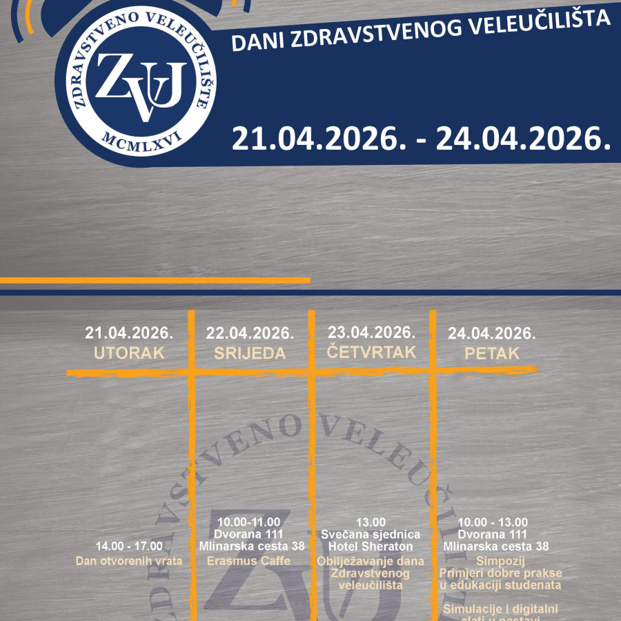 Dani Zdravstvenog veleučilišta održavaju se od utorka 21. travnja do petka 24. travnja 2026.