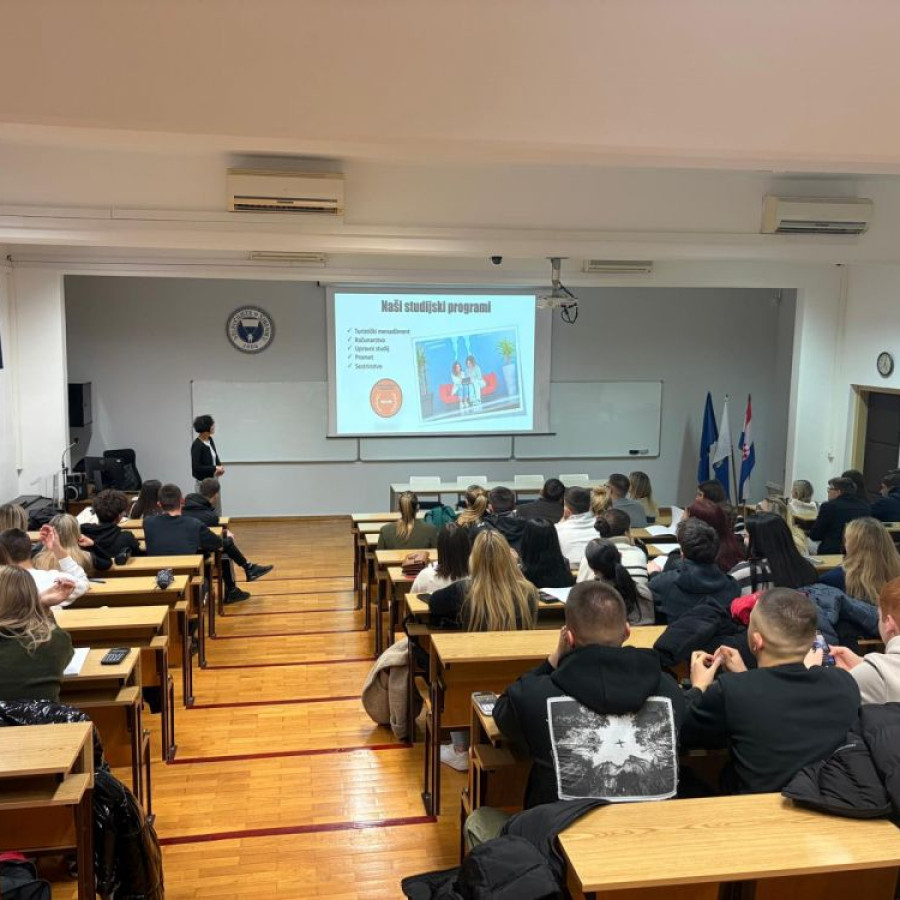 Kolega Edi Luketa, voditelj Centra za razvoj karijera i podršku studentima, te dr. sc. Ivana Kardum Goleš budućim su studentima predstavili studijske programe, mogućnosti obavljanja stručne prakse, sudjelovanja u Erasmus+ i CEEPUS mobilnostima, kao i različite oblike podrške u razvoju karijere.