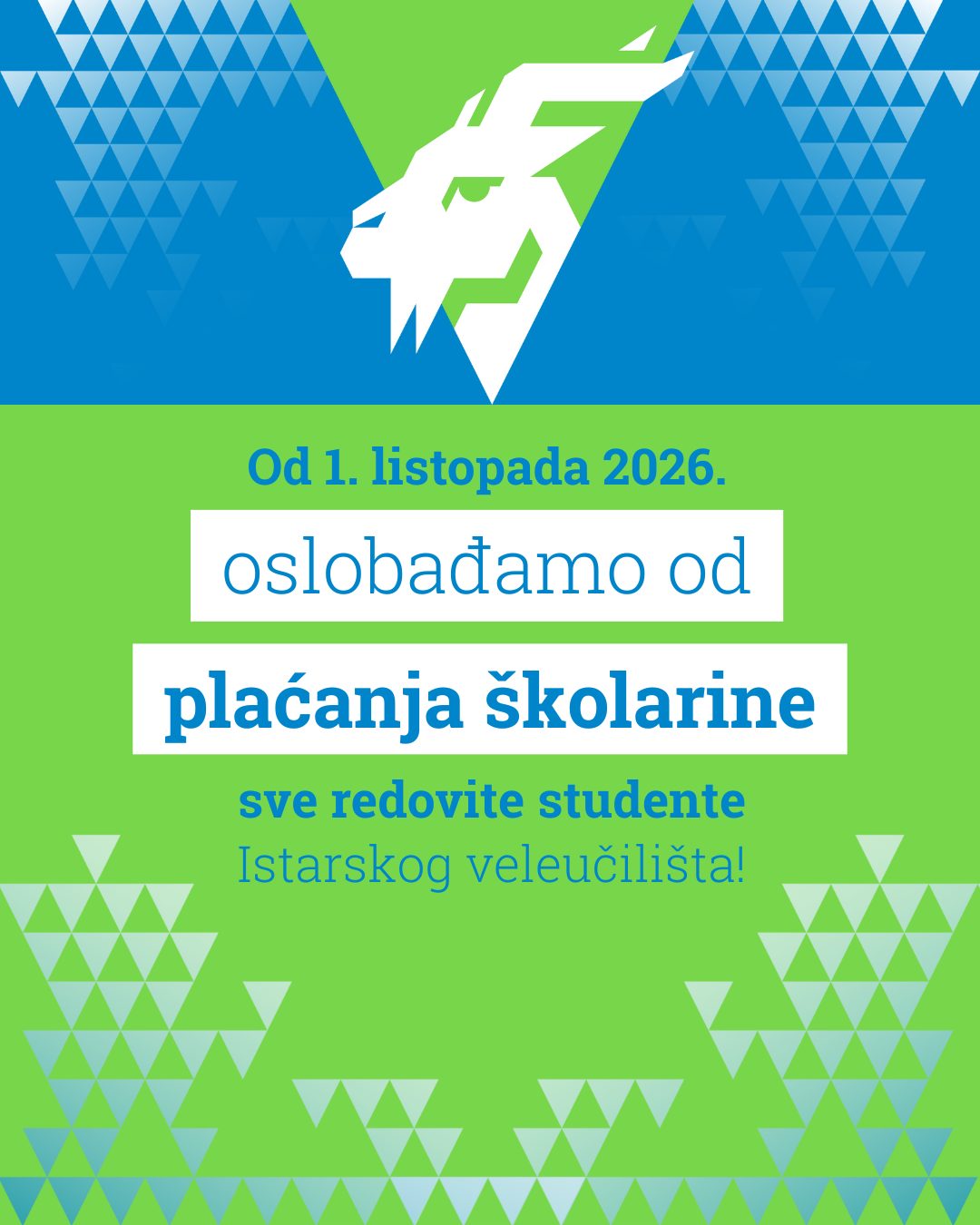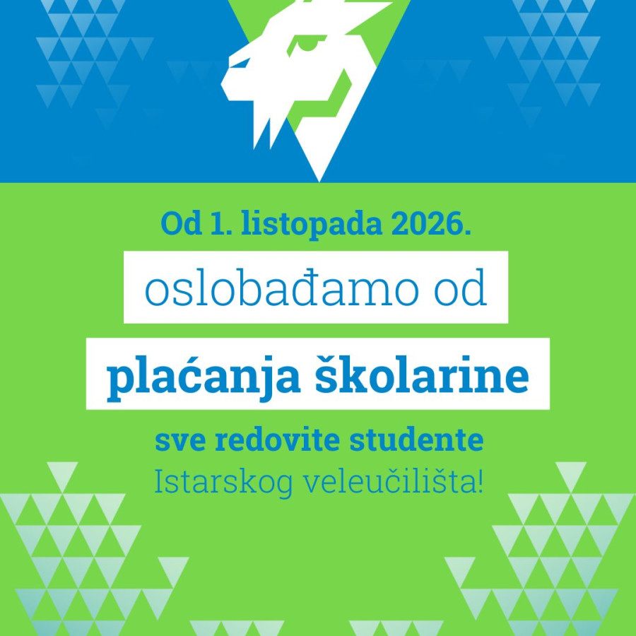 Na Sjednici upravnog vijeća Istarskog veleučilišta 5. veljače 2026. donesena je važna odluka za aktualne i buduće studente: „Kvalitetno obrazovanje i znanost trebaju biti dostupni baš svima, stoga će, od nadolazeće akademske godine, svi studijski programi na Istarskom veleučilištu biti besplatni za redovne studente.