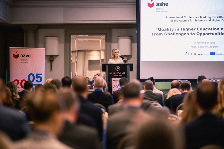„U vremenu obilježenom ubrzanom digitalnom transformacijom, globalnom mobilnošću, razvojem umjetne inteligencije i rastućim društvenim očekivanjima, pitanja osiguravanja kvalitete dobivaju novu dimenziju. Sustav se mora neprestano prilagođavati – biti otvoren, agilan i utemeljen na povjerenju“, istaknula je prof. dr. sc. Horvatek Tomić, naglasivši da kvaliteta nije samo cilj, već proces – trajni dijalog između institucija, dionika i društva kojemu služimo.